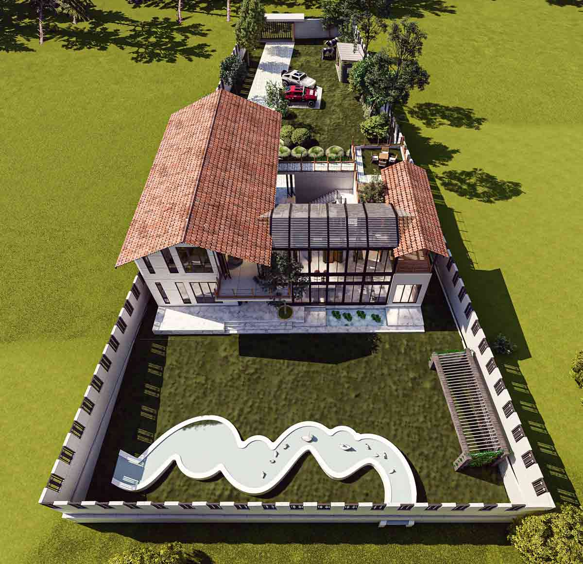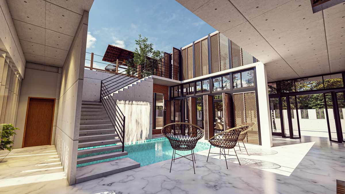 SCAPE Development Engineers, where we turn dreams into stunning realities. Escape the hustle and bustle of everyday life and indulge in the epitome of relaxation and comfort with our breathtaking at the vacation house. Nestled amidst serene surroundings, this exceptional property promises an unforgettable getaway for those seeking tranquility and luxury. Experience the perfect blend of comfort and style with spacious bedrooms, refreshing swimming pools, elegant stairs, inviting living rooms, charming cow houses, convenient parking, and enchanting gardens.
