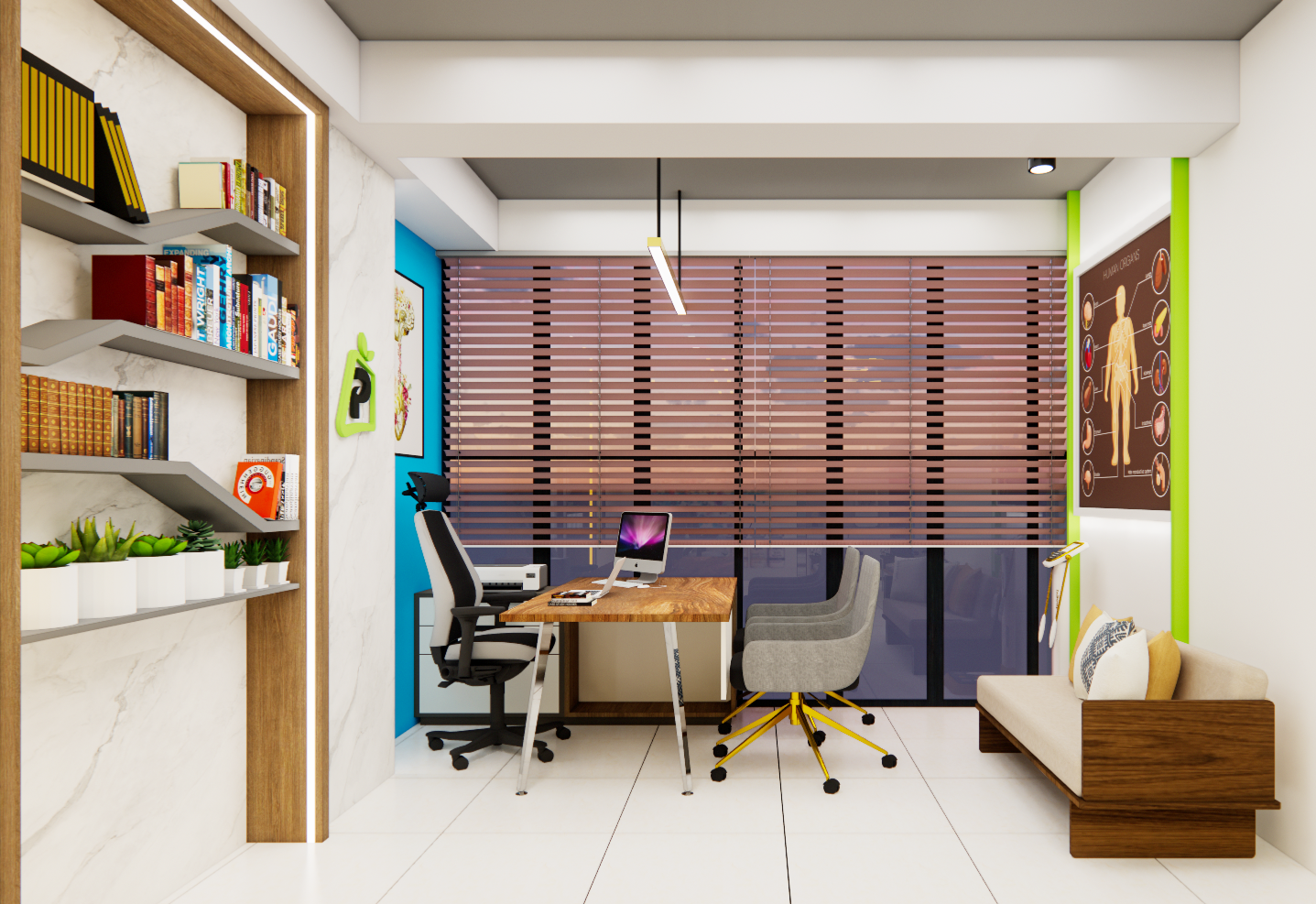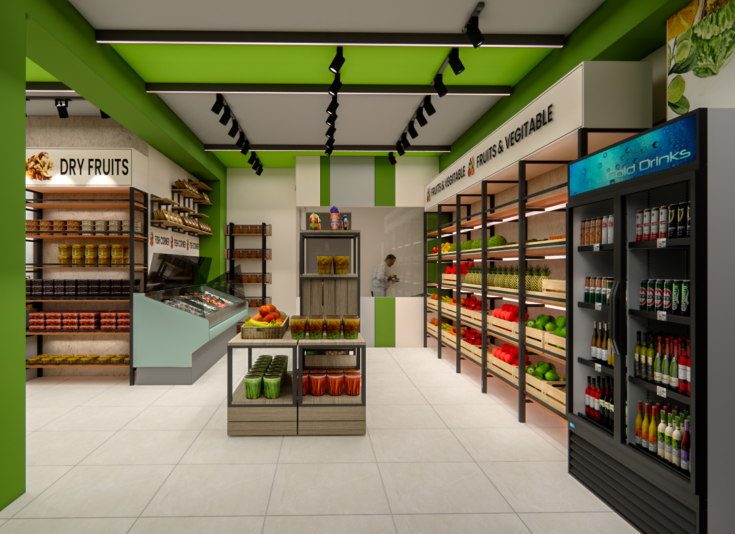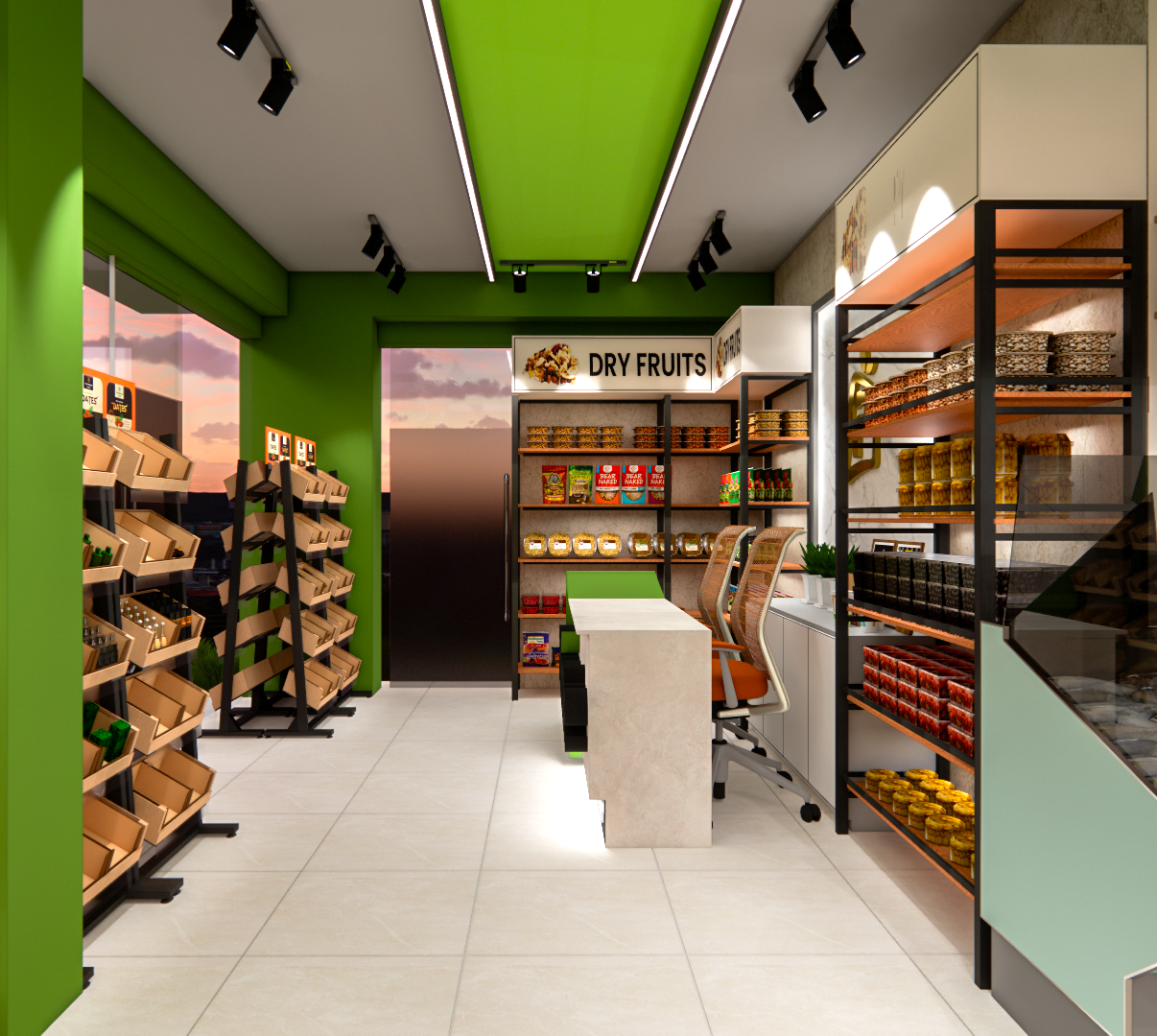 We delivered a comprehensive two-floor commercial interior design consultation for the Pustimate Store, optimizing for wellness and retail efficiency. The Ground Floor features a vibrant, customer-focused layout for an Organic Food Store, complete with natural finishes and fresh produce displays.