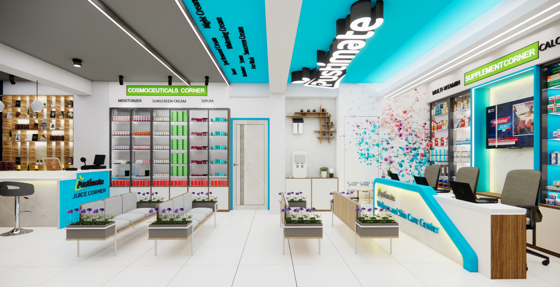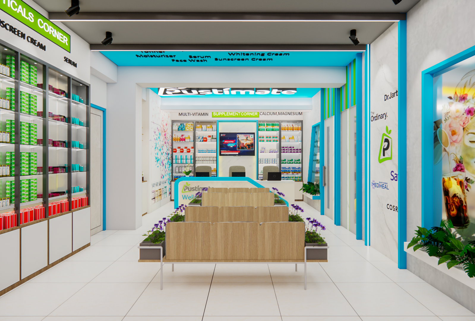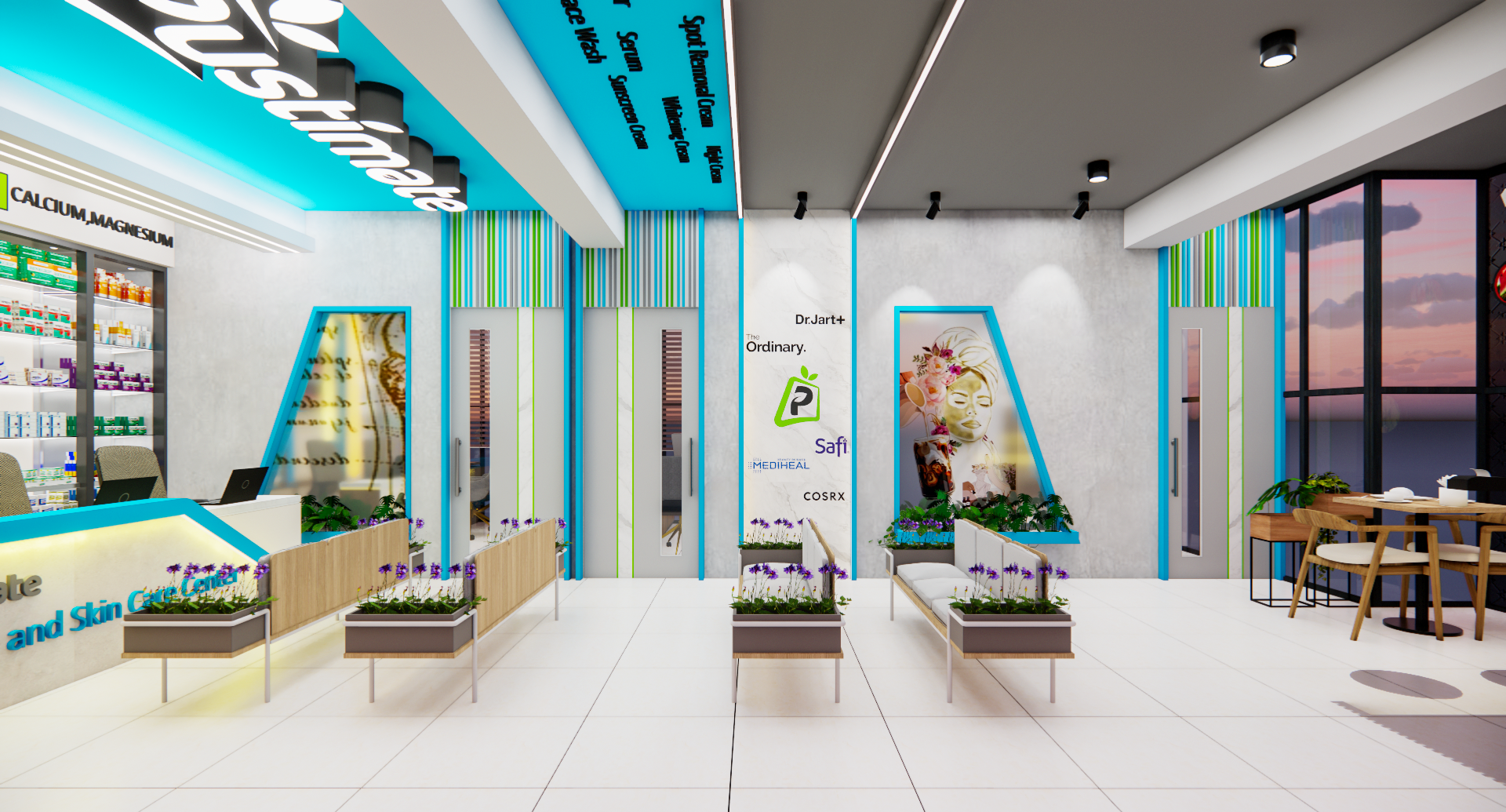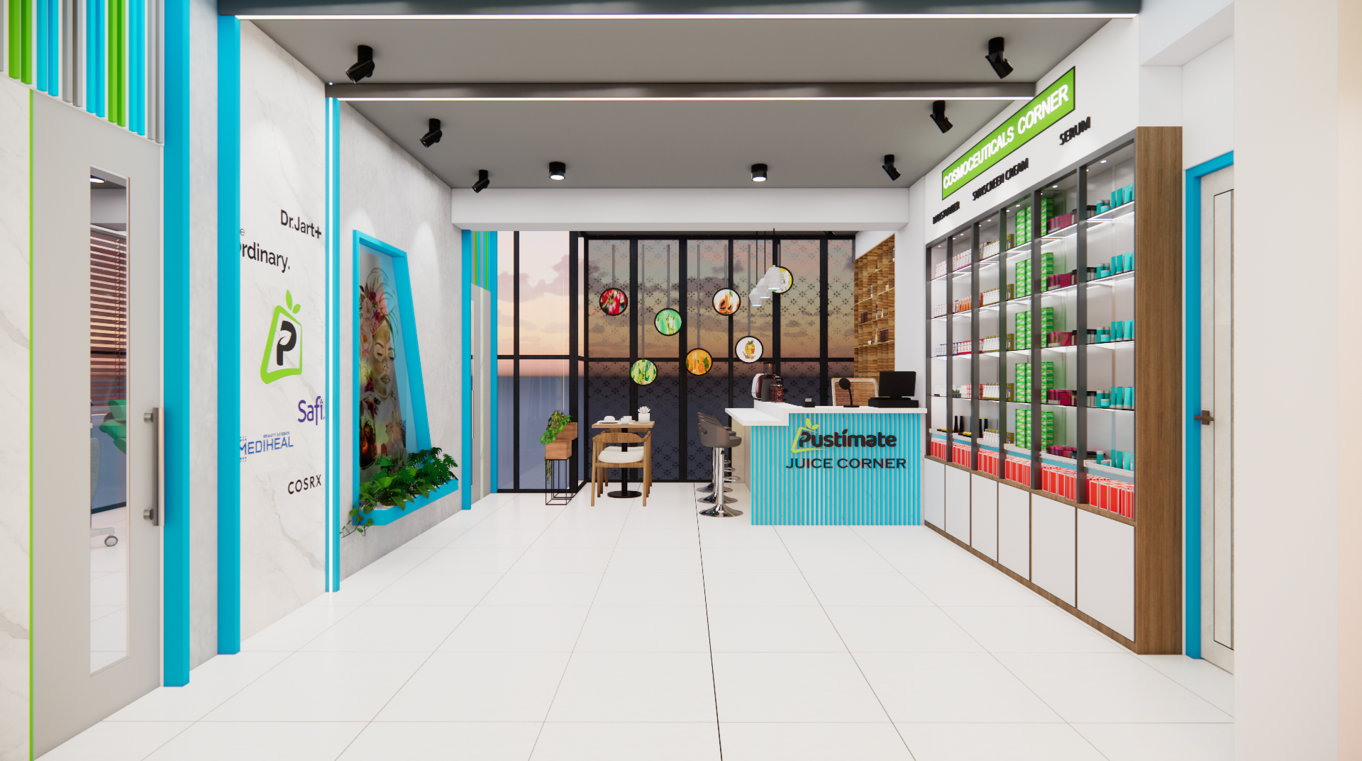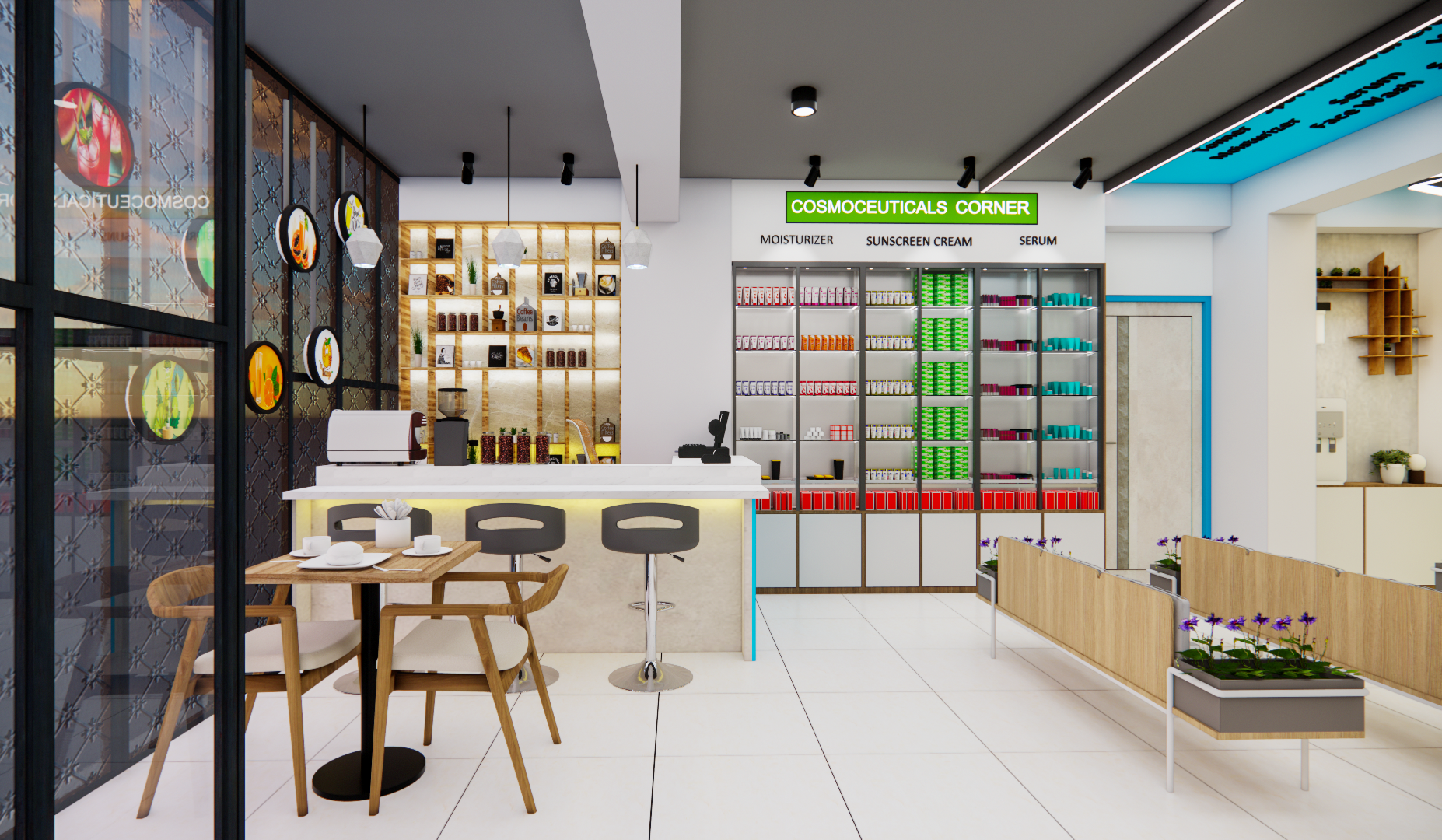 The First Floor is dedicated to a premium Skincare & Wellness Center, designed with a clean, modern aesthetic to enhance brand value. This project successfully integrated distinct retail concepts within a single, cohesive structure, showcasing our expertise in multi-functional retail interior architecture and commercial space planning.